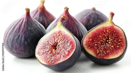Whole and Sliced Figs Displayed on Clean White Surface