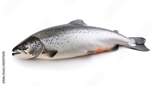 Whole Atlantic Salmon fish isolated on a white studio background : Generative AI