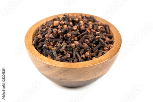Whole clove heads and pieces isolated over white