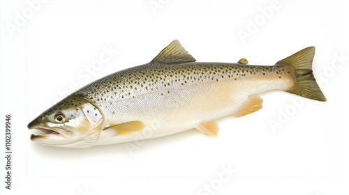 Whole fresh fish isolated on white, Fresh trout fish for seafood preparation, Raw fish ready for cooking