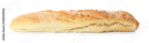Whole freshly baked baguette isolated on white