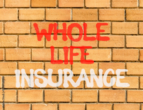 Whole life insurance symbol. Concept words Whole life insurance on beautiful brown brick wall. Beautiful brown brick wall background. Business whole life insurance concept. Copy space.