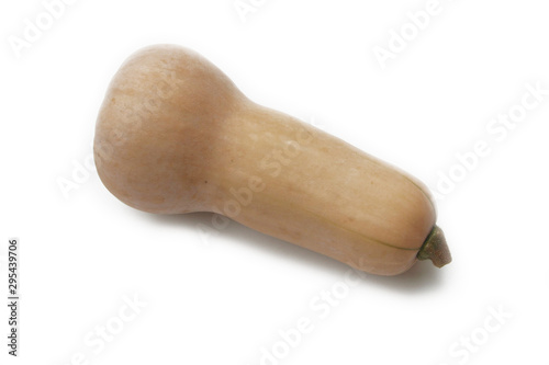 Whole raw butternut pumpkin isolated on white background. Cucurbita moschata 'Butternut'