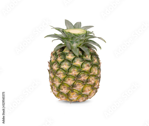 whole unpeeled ripe pineapple on white background