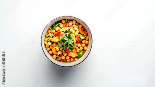 Wholesome Bowl of Chickpea Delight: A high-angle shot showcases a vibrant bowl filled with chickpeas, vegetables and herbs, creating a fresh and wholesome culinary experience.
