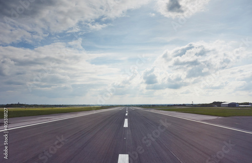 Wide angled central view of airport runway