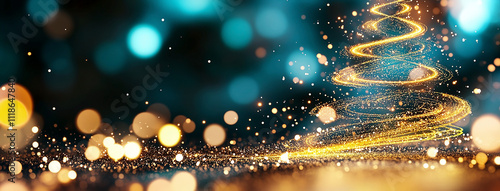 wide horizontal abstract Christmas tree landscape background with vibrant sparkling pine tree created with lines and shapes in dark background
