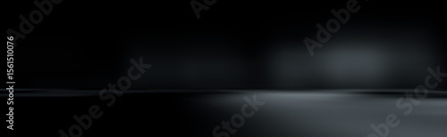 Wide perspective floor backdrop black room studio with gray gradient spotlight backdrop background for display your product or artwork