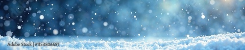 Wide-angle shot of a winter landscape with many snowflakes in varying sizes falling gently from above, frosty, landscape, cloud