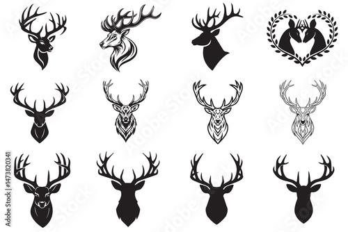 Wild Deer Head Silhouettes Vector Icons for Hunting and Nature Projects