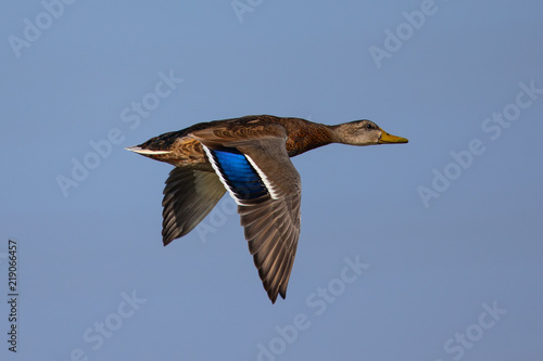 wild duck flying in beautiful light