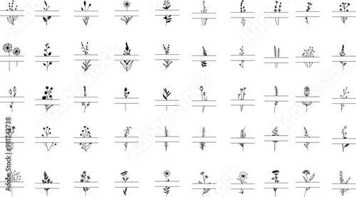 Wild flower floral leaf big set, doodle hand drawn outline style, for wedding love nature printing,card, wedding,love, t shirt,banner,product.vector illustration