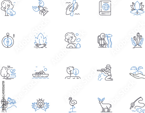 Wild nature outline icons collection. Wild, Nature, Animals, Wilderness, Trees, Natural, Scenery vector and illustration concept set. Landscape, Terrain, Forests linear signs
