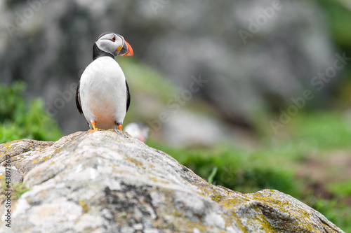 Wild Sea Birds Atlantic Puffins at the coast of Skomer Island, Pembrokeshire, Wales, UK