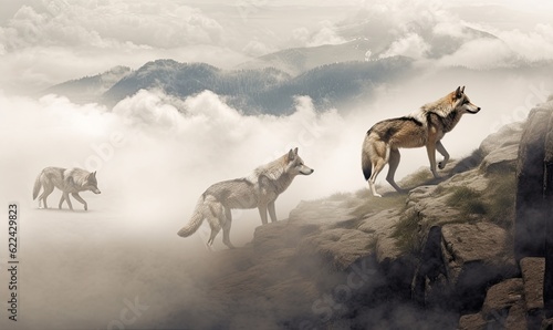 Wild wolfs in nature wilderness. Created with Generative AI technology.