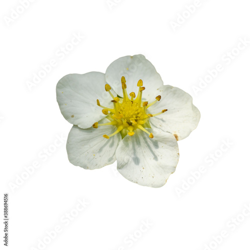 wild, woodland, Alpine, Carpathian or European strawberry, or fraisier des bois flower on white background