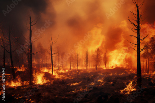 Wildfire, unplanned, uncontrolled and unpredictable fire in an area of combustible vegetation.