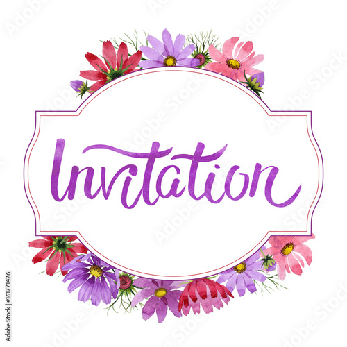 Wildflower kosmeya flower frame in a watercolor style isolated.