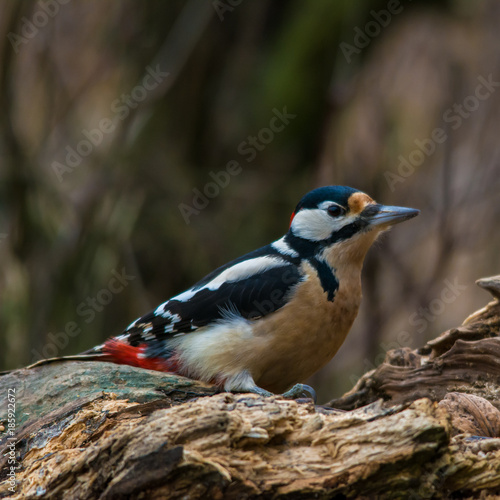 Wildlife photo, woodpecker on old trunk, Slovakia forest, Europe