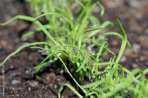 Willow carrot aphid (Cavariella aegopodii ) on young dill plants.