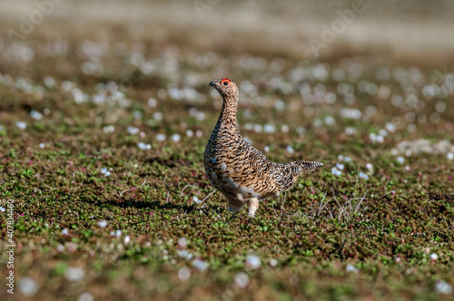 Willow Ptarmigan (Lagopus lagopus) hen in tundra, Barents Sea coastal area, Russia