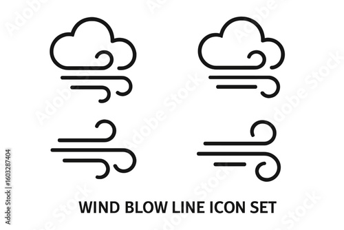 Wind blow line icon set. Weather forecast symbol collection. Simple outline pictogram of wind, breeze, and air flow. Windy day climate sign for web and mobile. Vector.