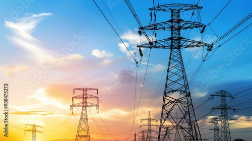 Wind power plant and technology. Smart grid. Renewable energy. Sustainable resources.