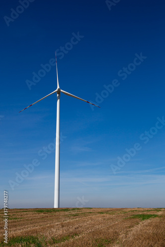 wind power plant over the deep blue sky. Sunny day, Summertime,