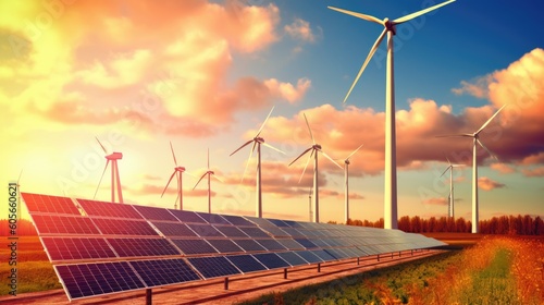 wind turbine and solar panels, ai generative