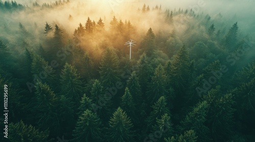 Wind turbines in the woodlands.