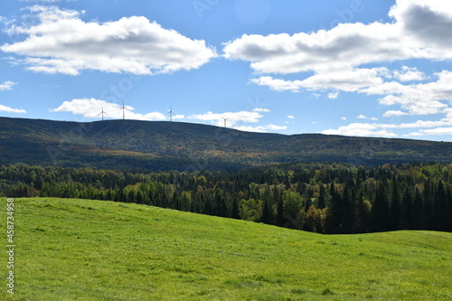 Wind turbines on the mountain, Saint-Paul, Québec, Canada