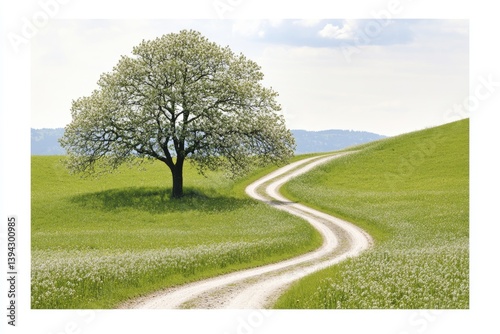 Winding Road Through Field, Single Tree