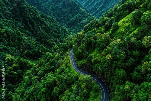 Winding road through lush green valley