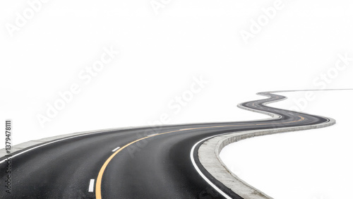 Winding Road Through Snowy Landscape Under Clear Blue Sky on a Bright Winter Day