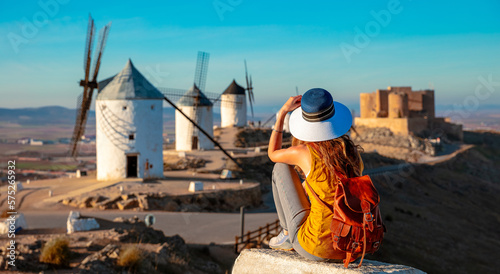 Windmill and castle in Spain- tourism in Consuegra