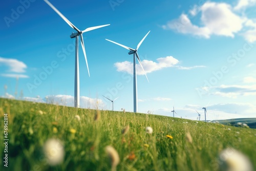 Windmills Harnessing Clean Energy on Beautiful Meadows