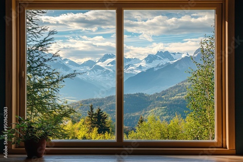 Window View of Mountain Range with Trees