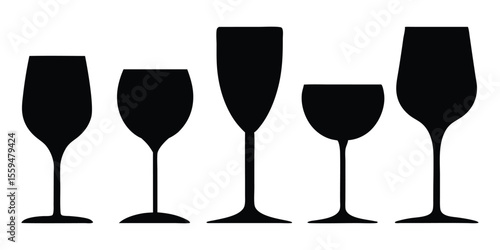 Wine glass silhouettes collection, wine glass icon vector set, glasses silhouettes