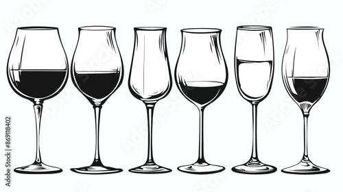 Wine Glasses Silhouette Vector Illustration Handdrawn