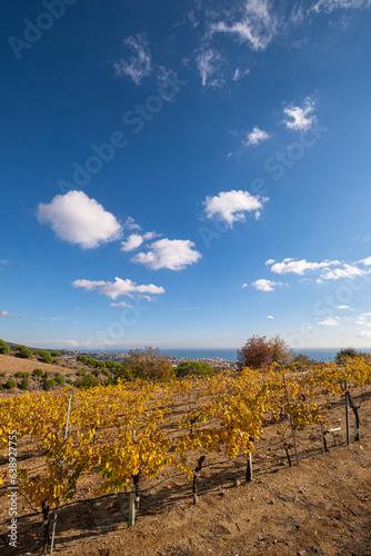 Wine landscape with vineyards during autumn in the Alella denomination of origin area in the province of Barcelona in Catalonia Spain
