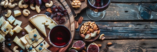 Wine Plates, Cheeseboard, Cheese Mix, Dried Fruits and Nuts. Various Cheese Pieces, Diced Cheddar