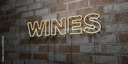 WINES - Glowing Neon Sign on stonework wall - 3D rendered royalty free stock illustration. Can be used for online banner ads and direct mailers..