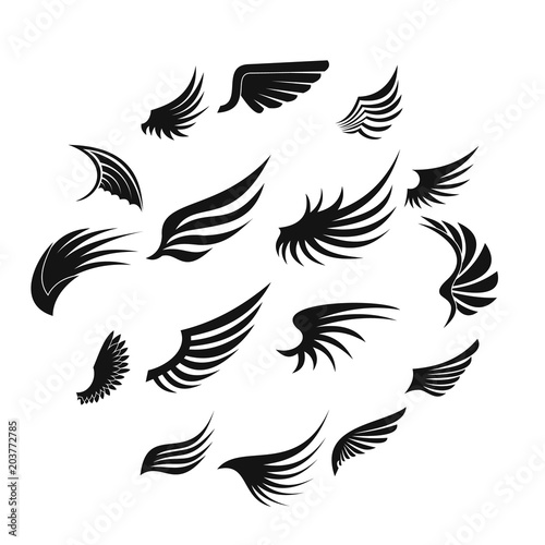 Wing icons set in simple ctyle. Birds and angel wings set collection vector illustration
