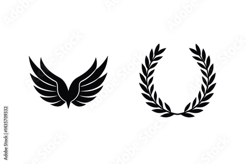 Winged Emblem And Laurel Wreath Black Vector Illustration For Logo Design