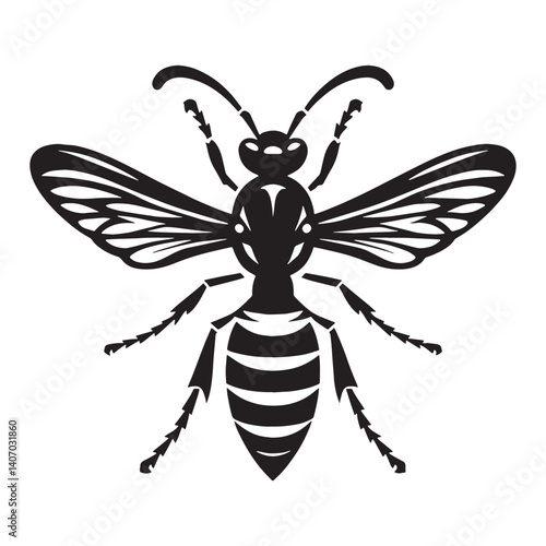 Winged Wasp silhouette, emphasizing mobility and force – Wasp illustration – Minimalist Wasp vector – Insect silhouette