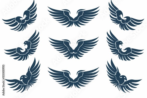 Wings flat icon, angel wings emblem, bird feathers minimal silhouette, pigeon sign, spirituality symbol