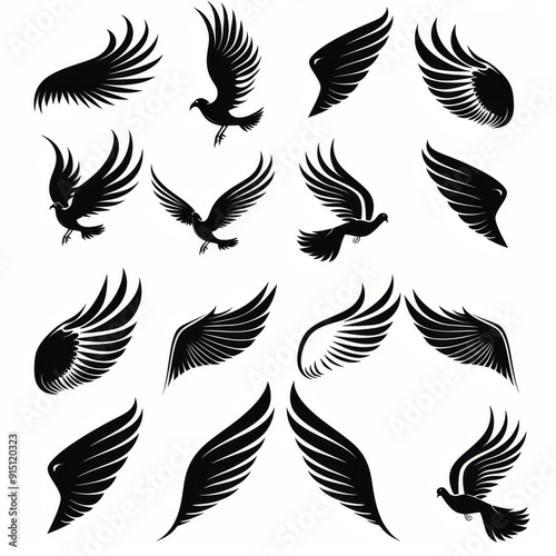 Wings flat icon, angel wings emblem, bird feathers minimal silhouette, pigeon sign, spirituality symbol