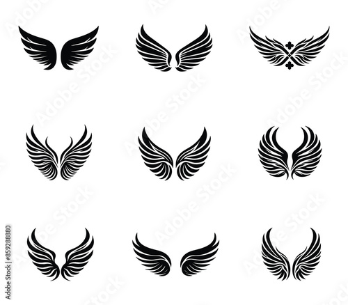 Wings silhouette logo vector set. Wings vector icons set. Wings badges. Collection wings badges