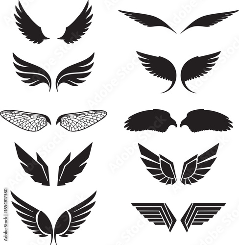 Wings Vector Icons. Angel, Eagle, and Dragonfly Wings Set.