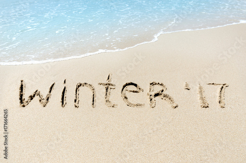 Winter 2017 sign sand near sea ocean tropic beach